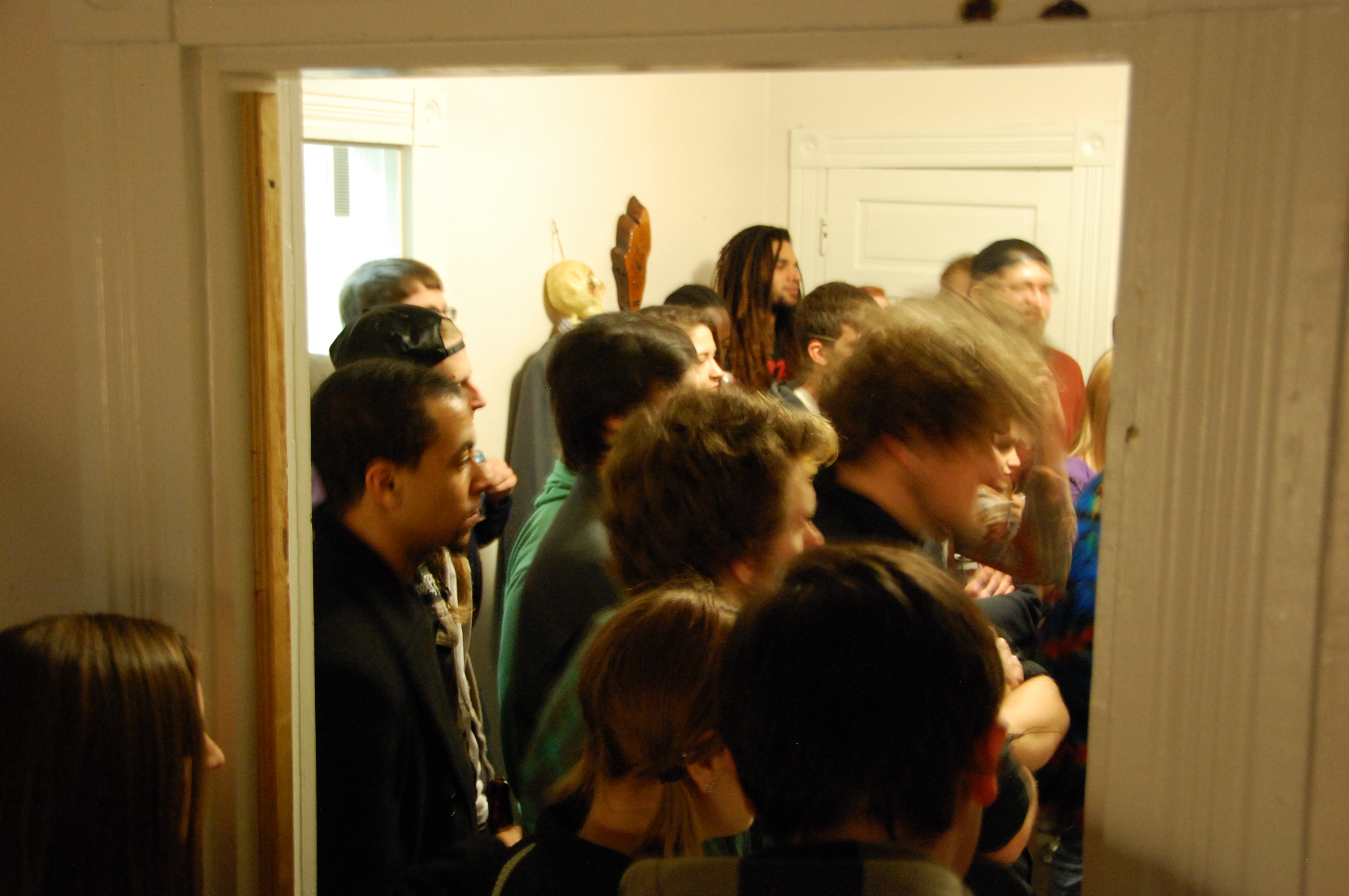 North Carolina! The sweet suburban life surrounding us as we drive through the neighborhood looking for the TYP Haus. We park in front of the “Haus” where two guys are blowing up firecrackers taped with eggs filled with confetti: “I should stop but this is way too much fun” our host is an exuberant hyperactive young student. The two hosts were fooling around with a mandolin and a toy guitar on the front porch when we arrived. He now describes the recycled furniture on his front porch and points out it was made by his father a “redneck weirdo sculptor”. The house is enigmatic, just a small living room is open on the corridor and kitchen where the shows take place. The exuberant excitement all over the place is pretty crazy due to the hosts of the evening that are all over the place. There’s a certain tiredness in my mood, I’m not really up for socializing. The show is a lot of fun. The audience is jammed into the room, and the show is very energetic with an enjoyable communion. Nevertheless drinking is still the audience’s main concern and we’re wondering if we’ll sleep here on the floor or grab a motel room. There’s a great mix of punk kids, goth ladies, wannabe hipsters, and random dudes, all getting along and interacting. To our surprise by 1:30 in the morning everyone leaves and we’re able to set up a camping site in the living room/stage. The hard wood floor is particularly soothing tonight.